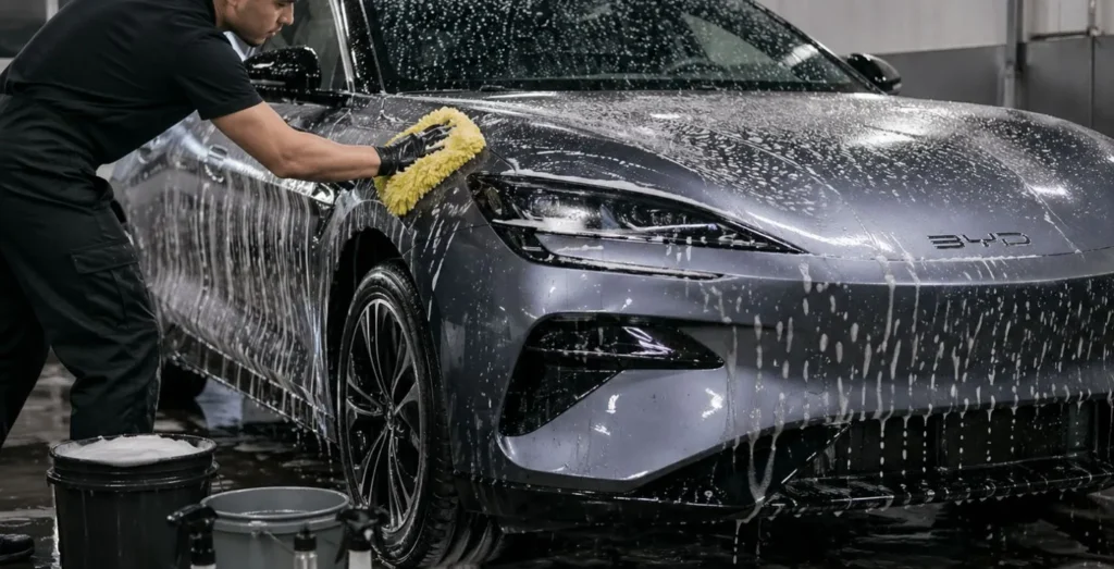A boa notícia é que não existe uma linha exclusiva de produtos "para elétrico". O que você usa em qualquer carro de qualidade funciona bem no elétrico. O que muda é o cuidado para não usar produtos agressivos.