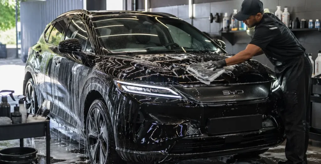 A BYD confirma a mesma segurança: todos os componentes elétricos dos seus modelos são selados e testados rigorosamente, e é totalmente seguro lavar os veículos em lava-rápidos.